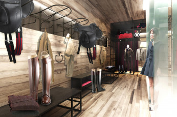Area-17为Cavalleria Toscana的旗舰店做了概念设计。Cavalleria Toscana是一个历史悠久的意大利品牌,品牌的主要内容有两个:马术服饰和日常运动装。头两个店将会在韩国首尔开张,分别位于新世界本店和江南店。