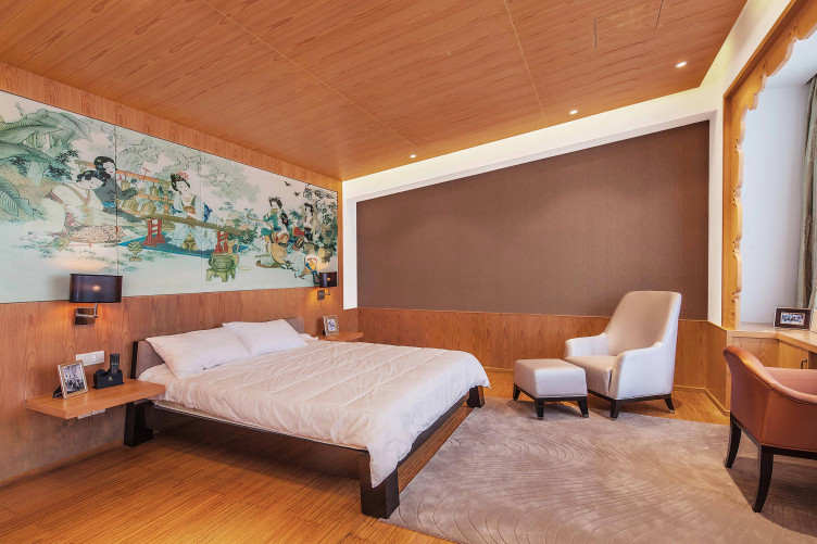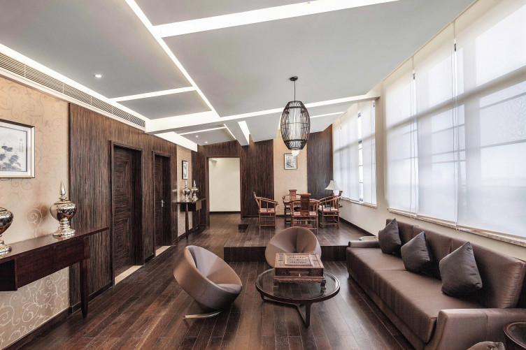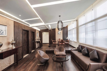 原有的四个独立的公寓都被彻底翻新,合并成了一个完整的空间,并精细地装修成新式中国风格。