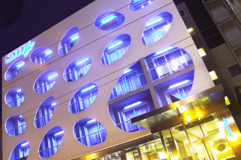Sixty Hotel también es apoyado por la consistencia con la que se desarrolla el tema de la comunicación entre los huéspedes del hotel y entre el edificio y la ciudad. En el interior, las cuarenta habitaciones están equipadas con una cámara web que conecta los distintos espacios, creando un ambiente agradable y amigable. En el exterior, la fachada perforada por "ojos" se convierten en una pantalla de proyección mega-gigante al aire libre.
