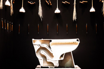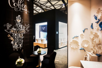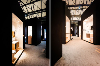 De los 350 metros cuadrados de stand, 150 están ocupados por una réplica de la joven marca de la tienda china. Los 200 metros cuadrados restantes se dividen en áreas temáticas dedicadas a los conceptos artesanales, el diseño de investigación y al ensayo de materiales, que son los valores fundamentales en los que se basa la empresa. Se presta gran atención a la zona del bar, con decoraciones hechas a mano y muebles con formas suaves y preciosas que invitan a hacer una pausa, haciendo hincapié en la idea de la hospitalidad. La paleta gráfica juega totalmente con tonos en blanco y negro ofreciendo la más alta importancia al diseño de los productos.