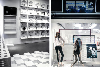 Il negozio è strategicamente situato all'ingresso della pista da sci, si pone all’attenzione dei visitatori grazie alla distintiva identità visiva di brand: dettagli tecnologici a vista, scabre superfici in pietra e grafiche ambientali dal forte impatto emotivo immergono istantaneamente i clienti nell’atmosfera adrenalinica degli sport sulla neve.